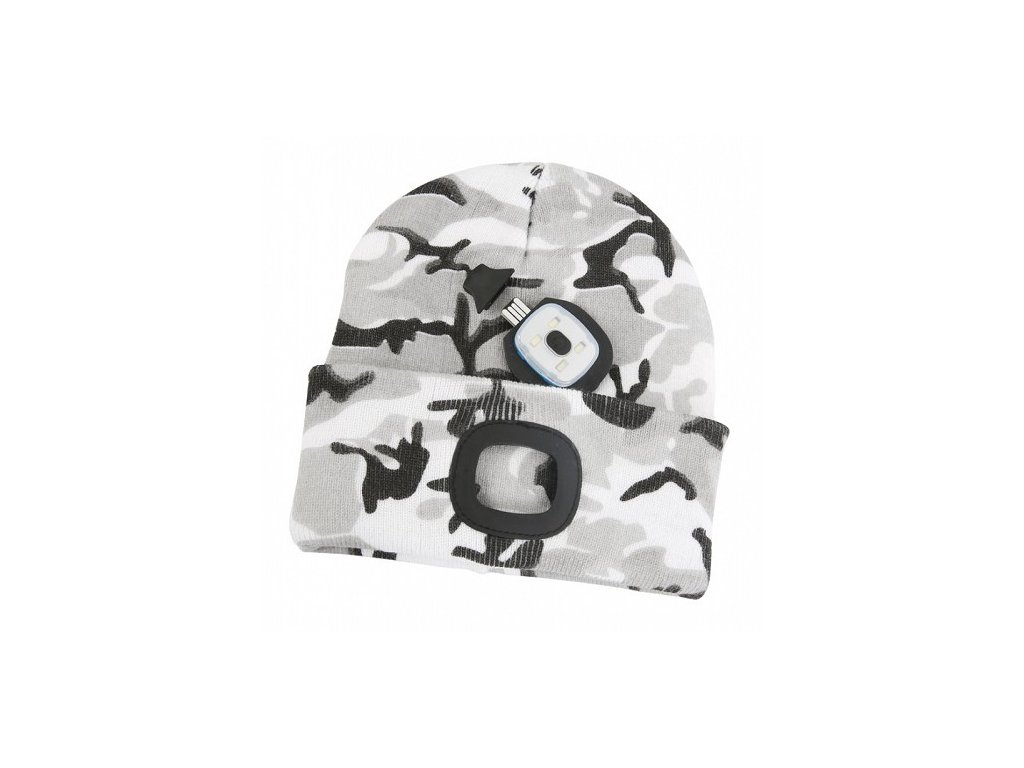 Čepice LED, kamufláž šedá, 4x SMD LED, USB nabíjení