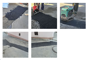 Směs se zpracovává ručně nebo s použitím malé mechanizace. Směs je třeba pokládat po vrstvách od 4 do 5 cm. Maximální tloušťka opravy je 10 cm, tj. 2 vrstvy po 5 cm, se zhutněním každé vrstvy zvlášť. V případě nedodržení tloušťky může docházet k vydrolování směsi. Směs se uloží a pomocí hrábí rovnoměrně rozprostře cca 2–3 cm nad okolní povrch, zkontroluje se její rozložení v celém objemu vysprávky a následně se důkladně zhutní, optimálně vibrační deskou či pěchem. Po zhutnění je směs mírně elastická. Pro odstranění počáteční lepivosti je vhodné zhutněný povrch pohodit prachovou frakcí kameniva, aby bezprostředním pojezdem nedocházelo k poškození povrchu. K úplnému vytvrdnutí směsi dojde během 2–3 dnů, dle klimatických podmínek. Při vyšších teplotách je hmota více a déle plastická. Plné vyzrání je po úplném odvětrání rozpouštědel v celé tloušťce, tj. cca po 10 dnech. Pro delší životnost opravy je vhodné okraje opravovaného místa ošetřit asfaltovou zálivkou. Opravená místa lze později překrýt jiným typem celoplošné úpravy (nátěr, mikrokoberec za studena, asfaltový beton apod.).