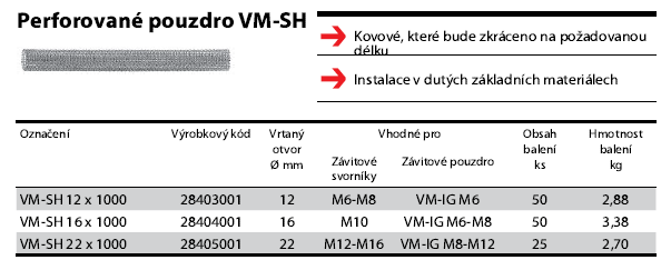 Kovová sítka Illbruck VM – SH pro kotvení do dutých materiálů