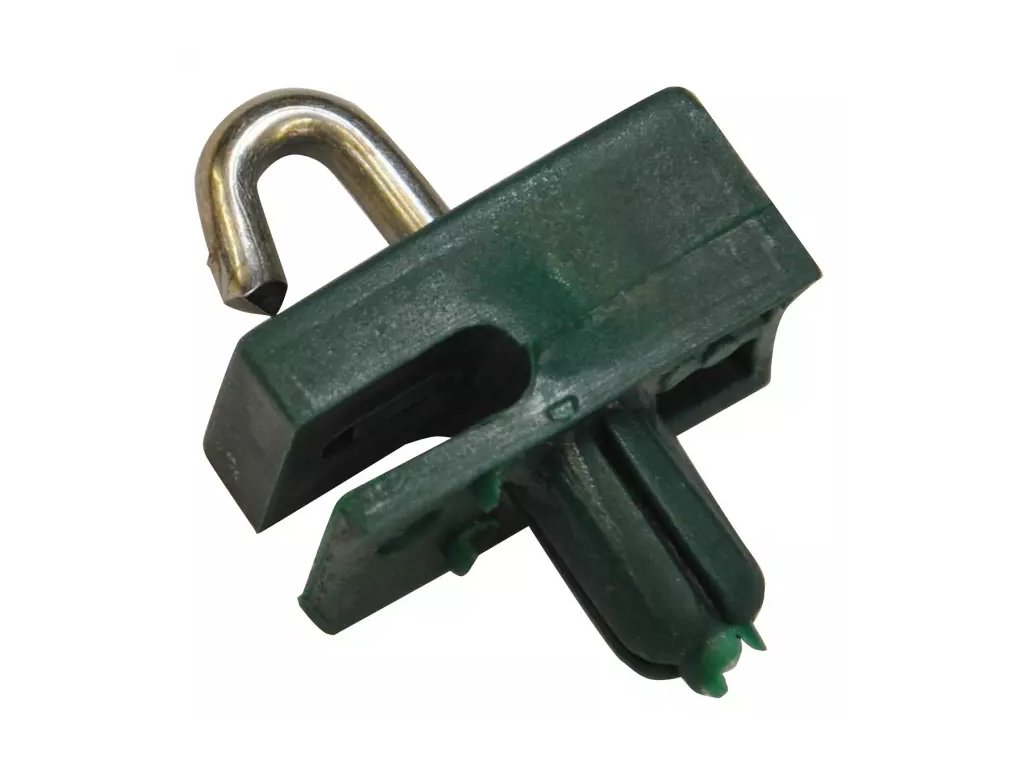 Příchytka napínacího drátu zatloukací zelená drží napínací drát na sloupku