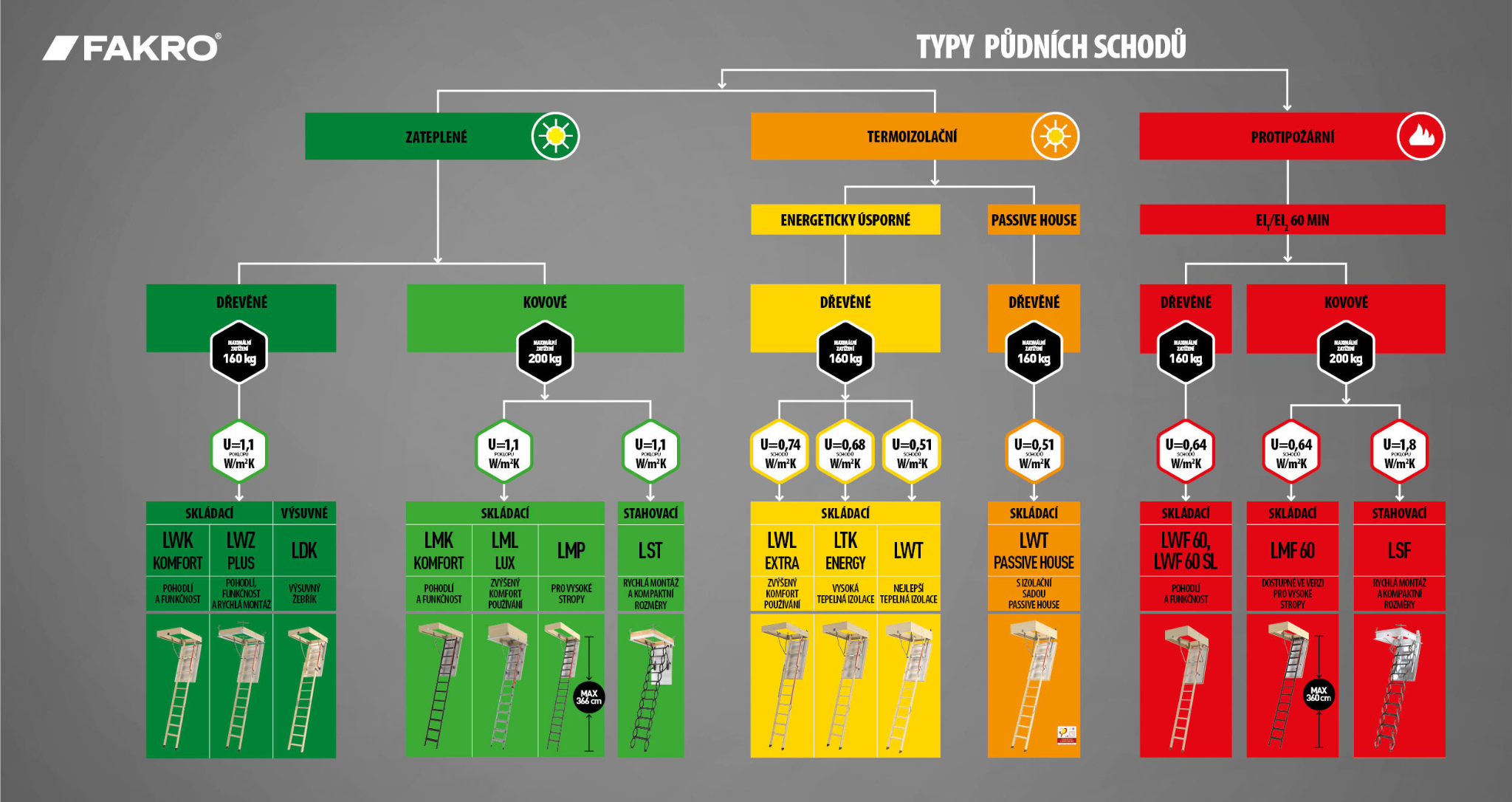 *Součinitel prostupu tepla U se liší ve zhlediska prostupu přes víko- Ud nebo prostupu přes celý otvor- Uw. Žádný z uvedených výrobců neuvádí oba tyto parametry a Ud je vždy menší. Schody tak nelze přesně porovnat.