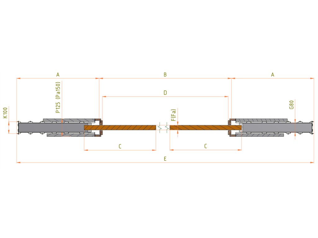 Vnější tloušťka (K) 100 mm stavebního pouzdra LATENTE Komfort = dokončená příčka (P) 125 mm (Pa) 150 mm.