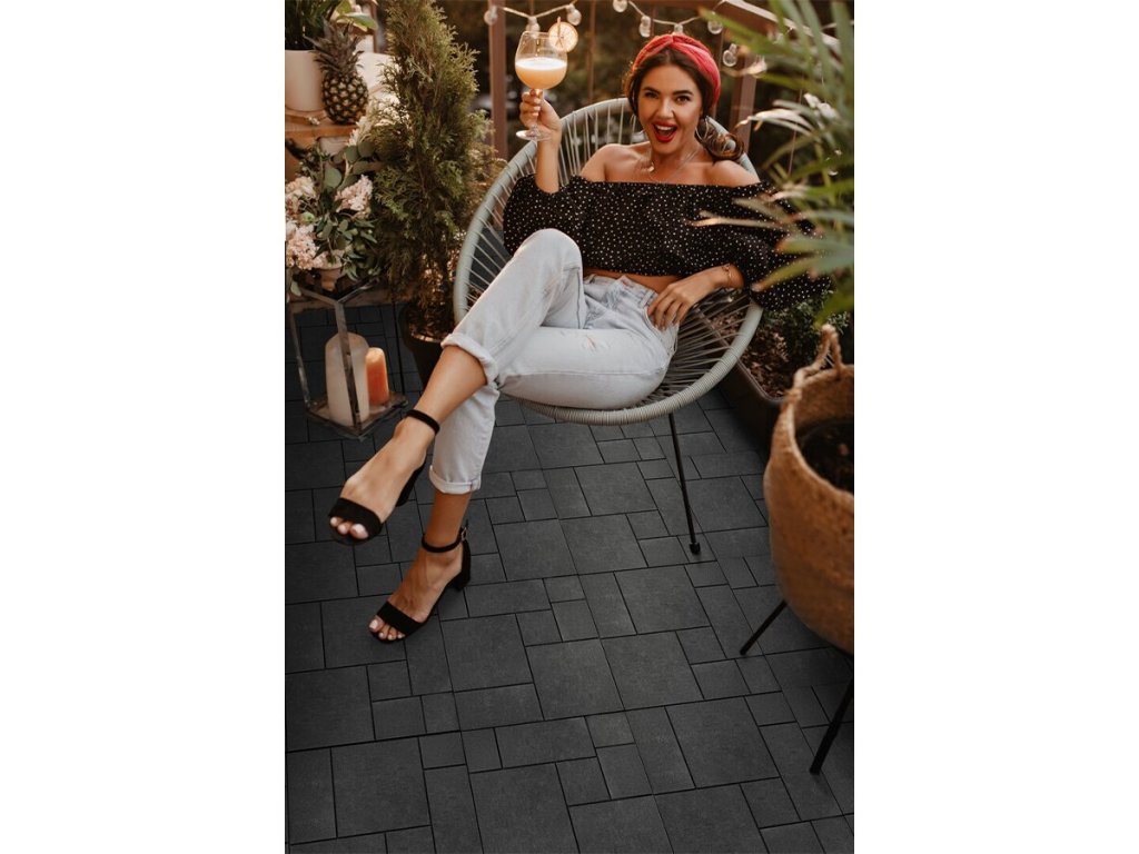 Grafitová gumová terasová dlažba FLOMA Mosaic - délka 30,5 cm, šířka 30,5 cm, výška 1,5 cm
