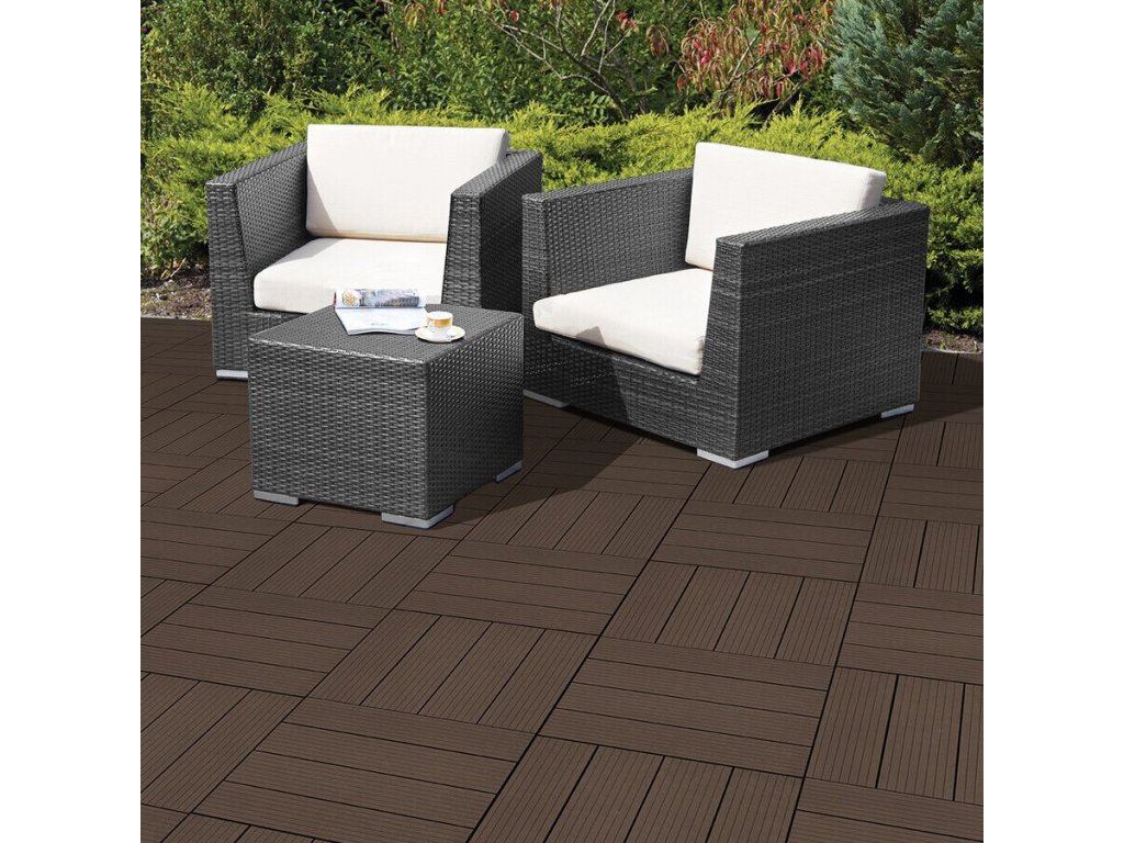 Hnědá gumová terasová dlažba FLOMA Cosmopolitan - délka 30,5 cm, šířka 30,5 cm, výška 1,5 cm