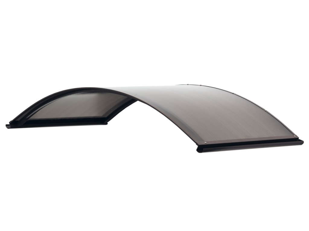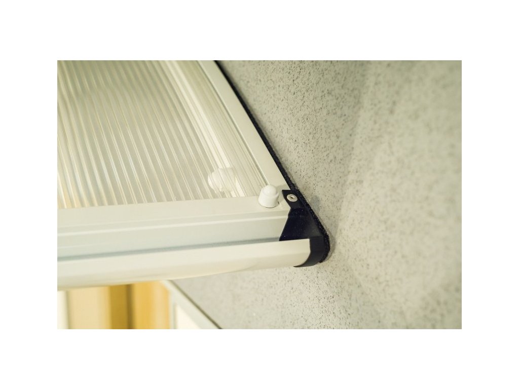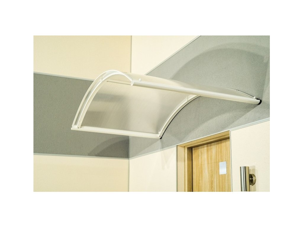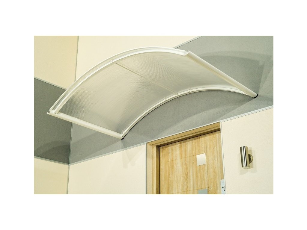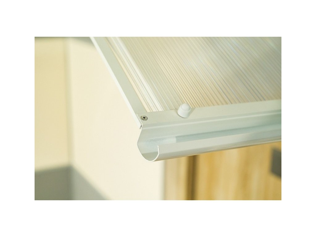 Stříška nad dveře vyrobená z práškově lakovaného hliníku. Na rozdíl od stříšek s plastovou konstrukcí hliníková konstrukce perfektně odolává vlivům počasí, i po letech je pevná a stabilní. V zimě mrazem nekřehne a ani na silném letním slunci nedochází ke změnám barvy. Stříška je zasklená komůrkovým polykarbonátem síly 4,5 mm s oboustranným UV filtrem (značka LEXAN® - vyrobeno v Rakousku). Jde o velmi kvalitní značkový polykarbonát od jednoho z nejlepších světových výrobců.