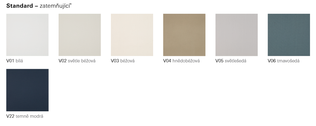 Zatemňující roleta ROTO ZRV v barevných odstínech E a D s vodícími lištami. Zatemňující rolety ROTO ZRV zajišťují plné zastínění a zatemnění místnosti díky bílé světlonepropustné vrstvě na vnější straně látky. Ovládací lišta i látka rolety se pohybuje v postranních vodicích lištách, její pohyb lze zastavit v libovolné poloze.