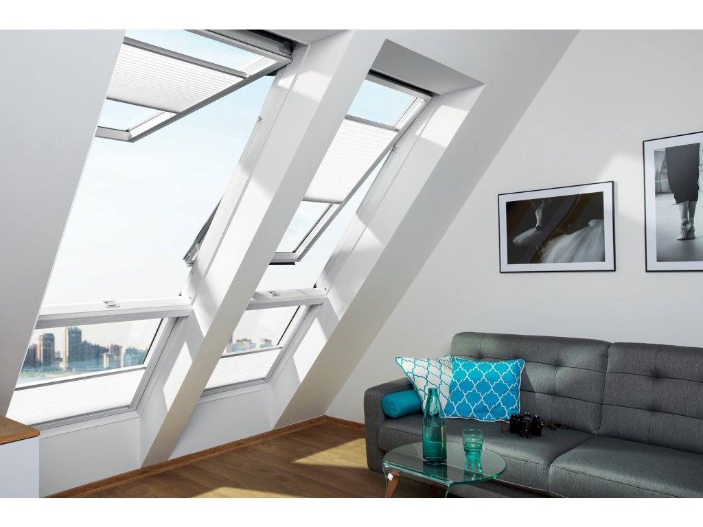 - Střešní okno nové generace vybavené dvěma oddělenými funkcemi otevírání – výklopnou a kyvnou.
