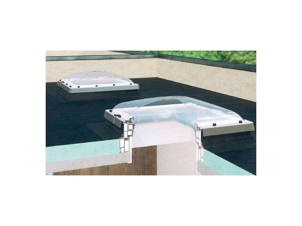 Okno do plochých střech je osazeno bezpečnostním zasklením odolným proti vloupání tř. P2A. Při pokusu násilného rozbití skla se střepy neroztříští, ale zůstanou uloženy v pružné a současně pevné folii. Zasklení P2 a inovativní systém montáže kupole, který znesnaďnuje její demontáž, zvyšuje odolnost proti vloupání. Kupole je vyrobena z čirého polykarbonátu. Tento polykarbonát je vysoce odolný proti nárazu a vůči působení atmosferických vlivů jako je silný déšť nebo krupobití. Navíc je ošetřen ochrannou vrstvou, která brání nežádoucímu působením UV záření. Okna mohou být osazena na 15 cm vysokém zvedacím rámu XRD, díky kterému je lze zvednout a namontovat například v zelené střeše. Lze namontovat do plochých střech se sklonem 0-15°. Pod kopuli z čirého polykarbonátu je možné namontovat markýzu.